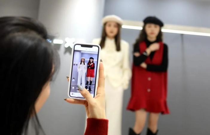 在永定城·京津冀(固安)國際商貿城,商家在為服裝模特拍照。新華社記者 馮維健 攝
