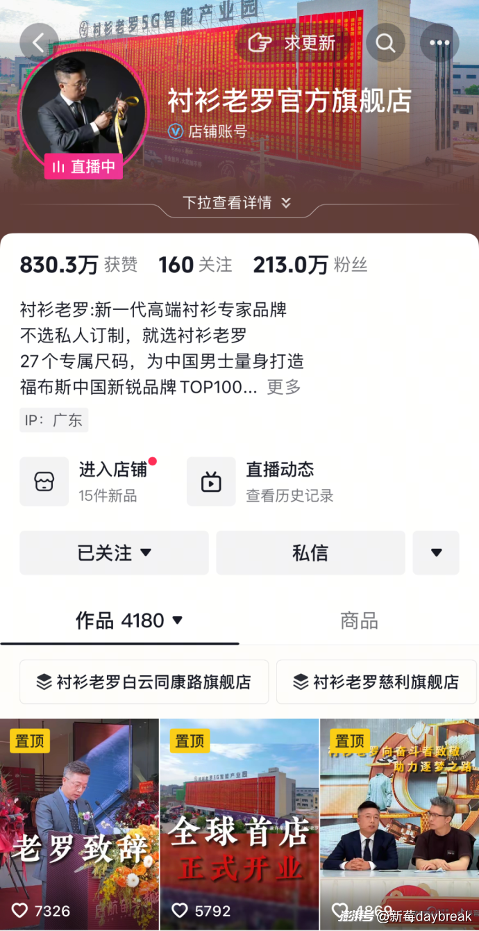 「襯衫老羅」抖音主頁