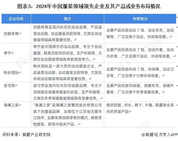 中國服裝領先企業主要有安踏體育、李寧、特步國際等,企業具體布局情況如下: